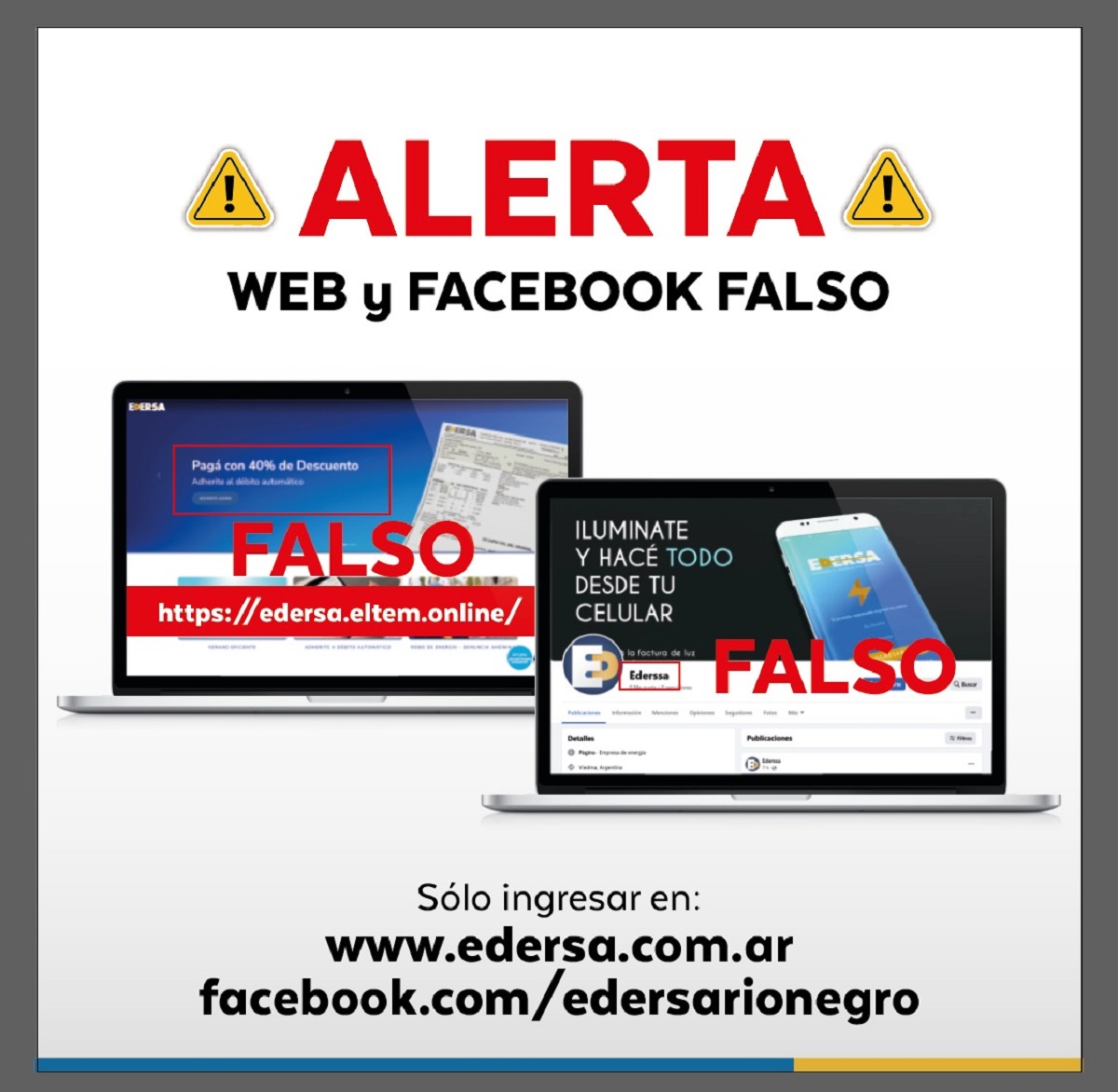 Edersa alertó sobre una página falsa que intenta estafar a rionegrinos