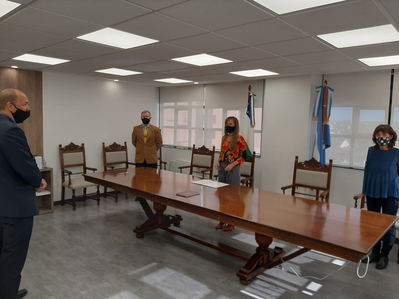 Debido a la situación sanitaria, el acto se desarrolló bajo normas de distanciamiento, sin familiares ni público. Le tomó juramento la presidenta del Superior Tribunal de Justicia, Liliana Piccinini, con la única presencia de la jueza Adriana Zaratiegui y el juez Enrique Mansilla.
