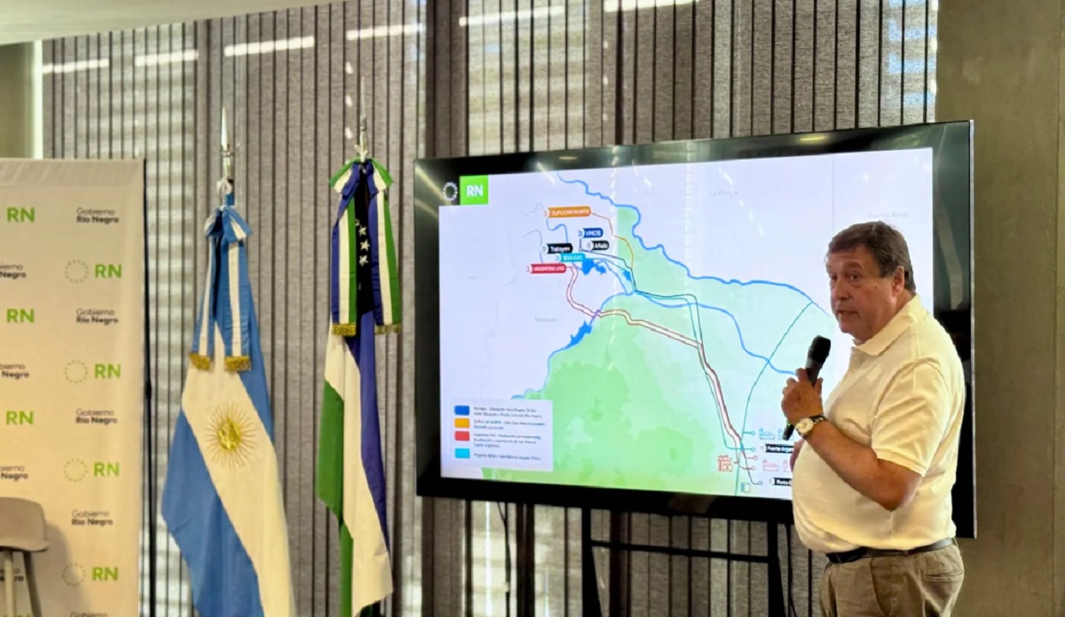 Weretilneck mostró un mapa con todos los proyectos energéticos de exportación y repasó el escenario de esas inversiones, además de destacar el rol de la Provincia para generar las condiciones que permitan que los proyectos se concreten. En ese marco, señaló que Río Negro fue la primera provincia en adherir al RIGI, y vinculó ese paso con el avance de inversiones asociadas a los proyectos energéticos.