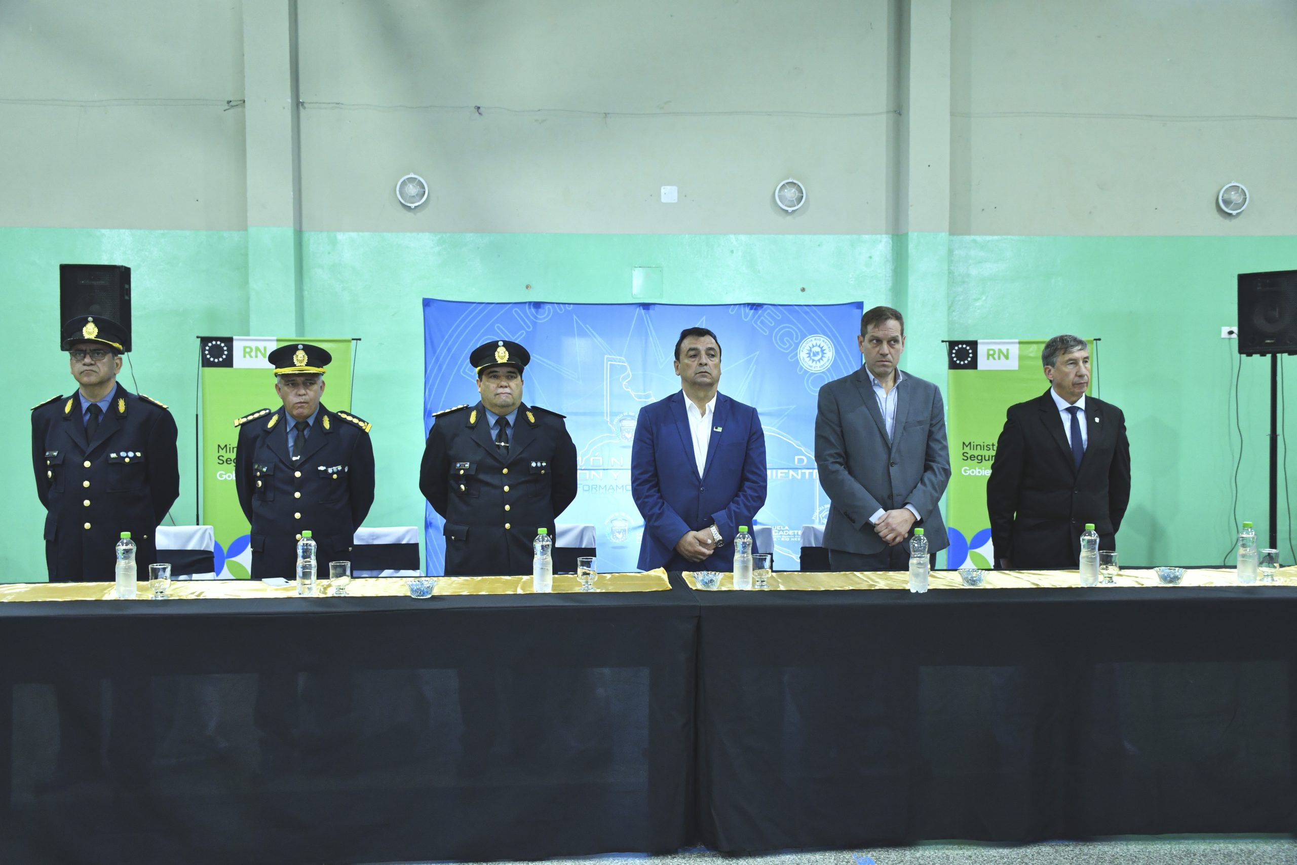 El encuentro fue encabezado por el Ministro de Seguridad y Justicia, Daniel Jara, quien estuvo acompañado por el Secretario de Justicia, Manuel Casariego; el Jefe de la Policía de Río Negro, Daniel Bertazzo; el Subjefe, Elio Tapia; y el Secretario de la SENAC, Darío Buonaventura.
