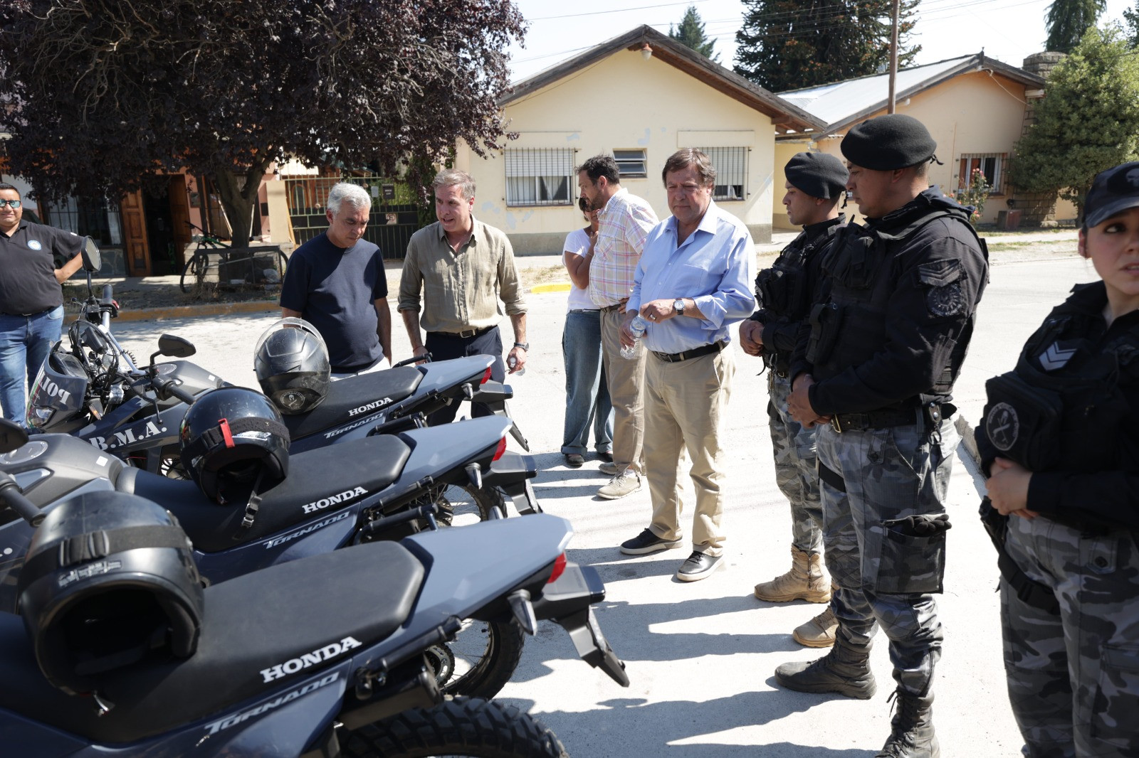 Asimismo, la Provincia entregó cuatro motocicletas Honda Tornado 300, que forman parte de un total de ocho adquiridas con una inversión de $86,5 millones. Las unidades entregadas estarán destinadas a la Brigada Motorizada de El Bolsón, con asiento en la Comisaría 12, fortaleciendo el patrullaje y la presencia preventiva en distintos sectores de la ciudad.