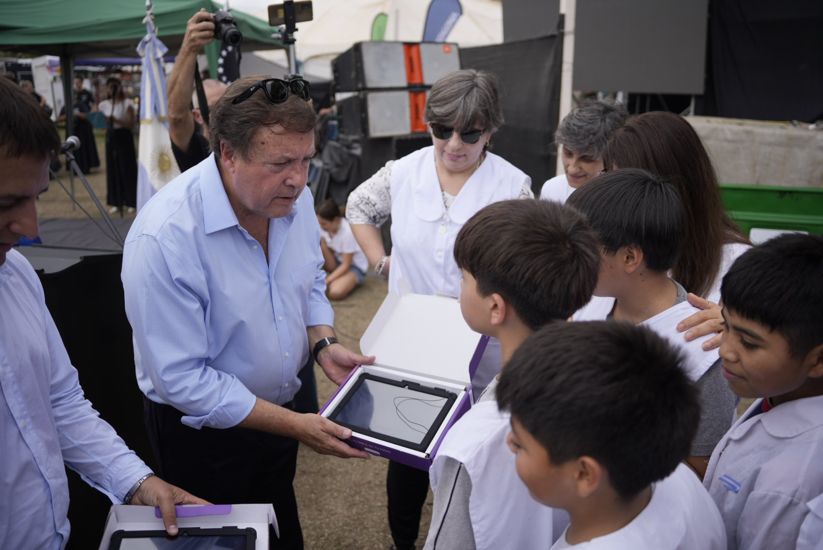 En materia educativa, se distribuyeron equipos de calefacción, tablets y kits escolares para establecimientos de la ciudad. Además, se entregaron dos nuevas motos al personal policial de la localidad para reforzar las tareas de prevención y seguridad.