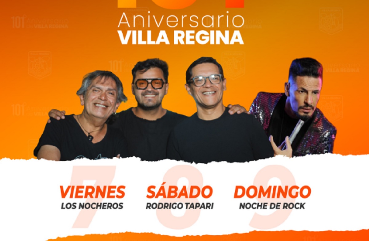 Villa Regina se prepara para vivir un nuevo aniversario con un amplio programa de propuestas culturales, recreativas y artísticas que se desarrollarán desde este viernes y hasta el domingo en distintos puntos de la localidad.